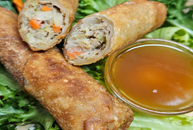 appetizers and dinners, spring rolls, dumpligns, bao buns, fried ork belly, chicken skewers, curry noodles and more